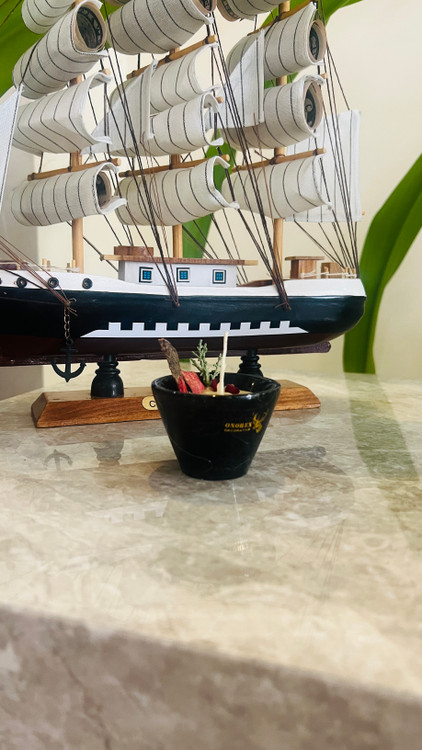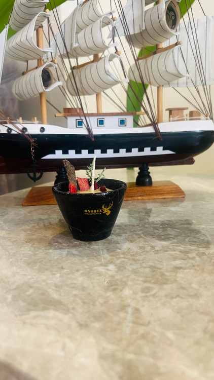 جاشمعی مرمریت مشکی همراه شمع داخل