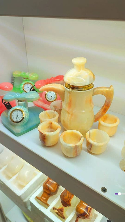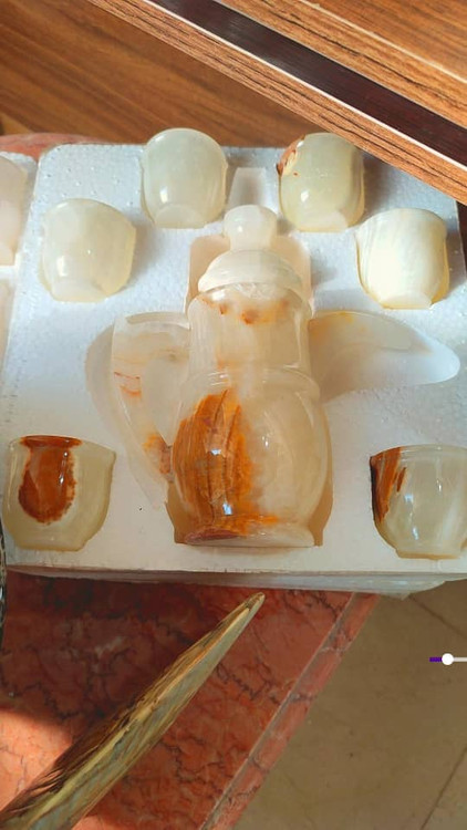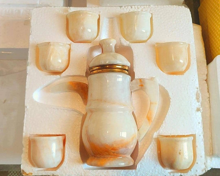 ست شش تایی فنجان با شربت خوری تولید شده از سنگ طبیعی مرمر