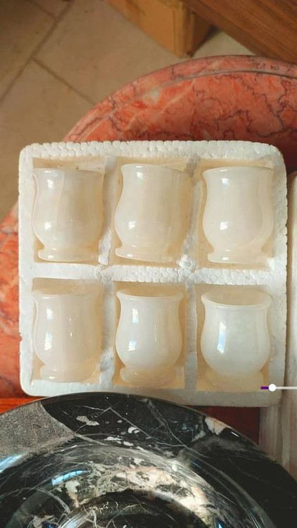 ست شش تایی جام / شات تولید شده از سنگ طبیعی مرمر