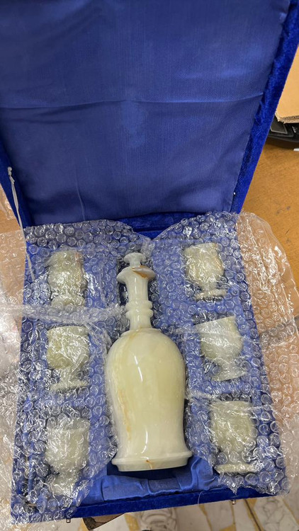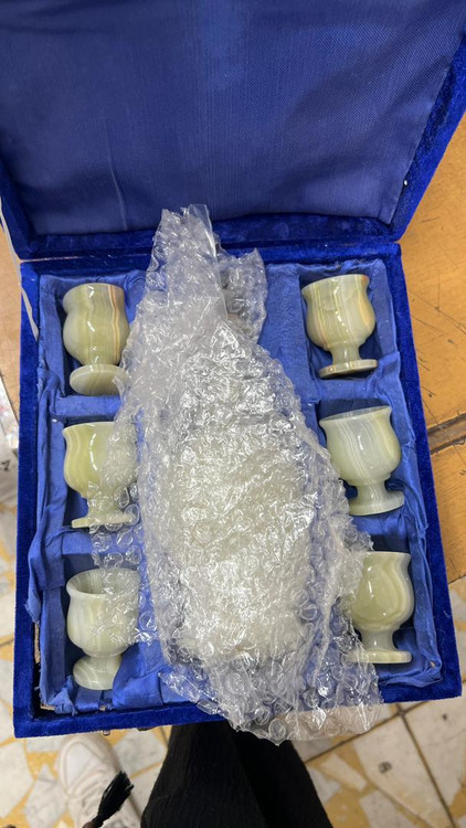 6 عدد جام + شربت خوری سنگی مرمر