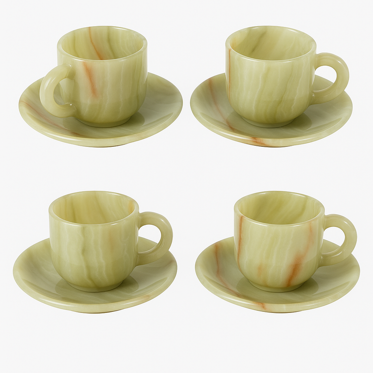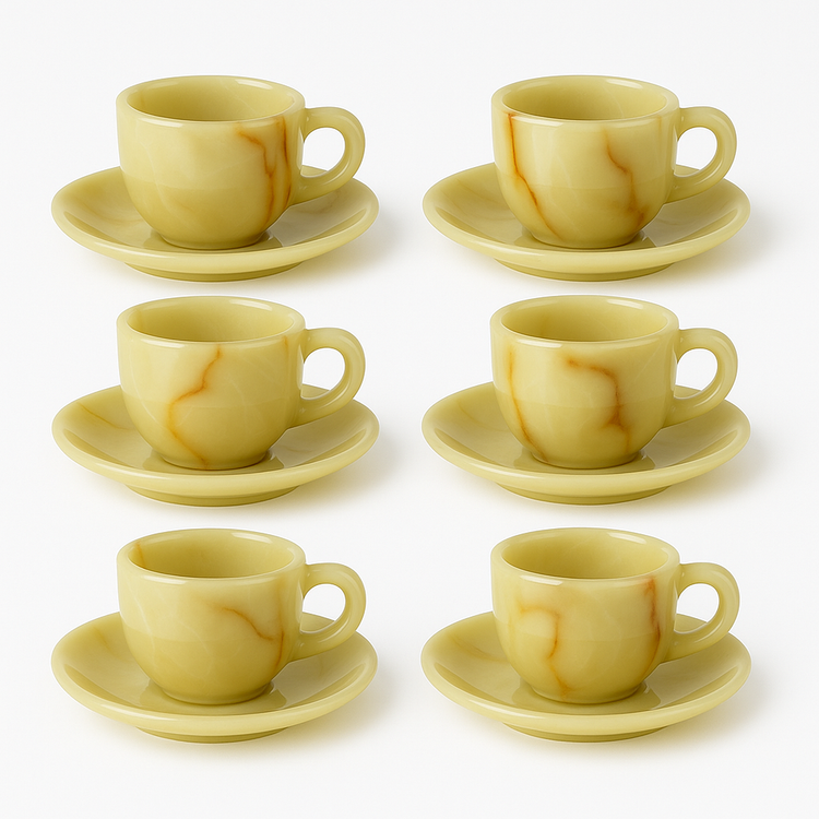 ست شش تایی فنجان / استکان و نعلبکی سنگی مرمر درجه یک صادراتی