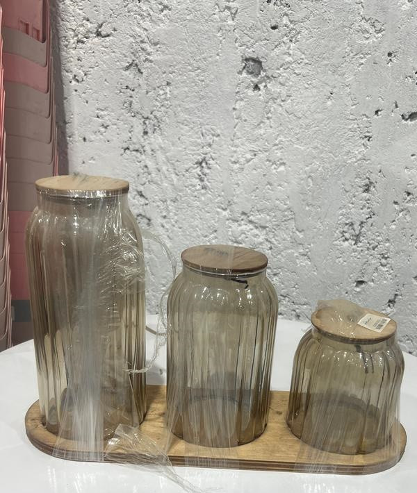 جا ادویه ای سه سایز در و پایه چوبی