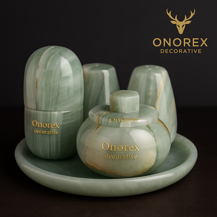 ست نمکدان قندان سینی و جا خلال دندان سنگی مرمر کد محصول Ono095214