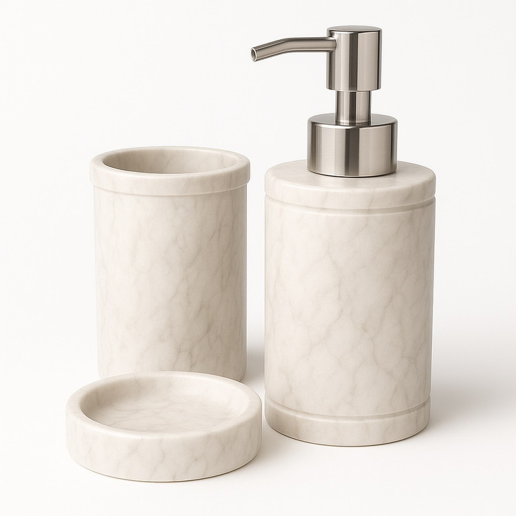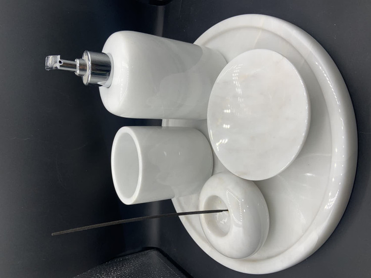 ست سه تیکه جا مایعی جاصابونی مرمریت سفید