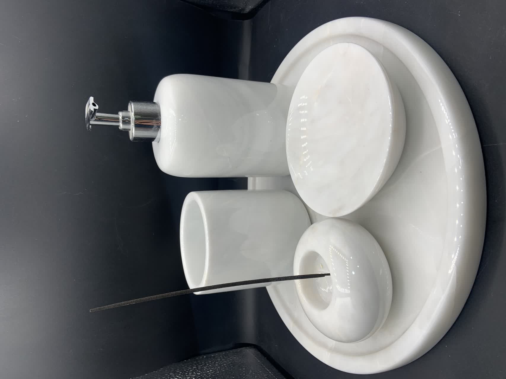 ست سه تیکه جا مایعی جاصابونی مرمریت سفید