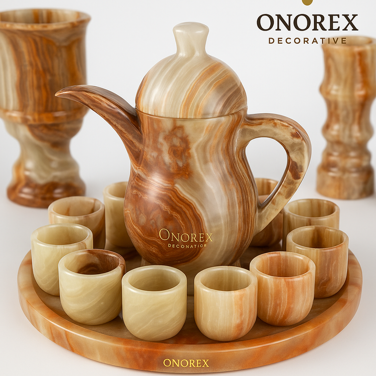 شامل 12 عدد فنجان / یک قوری سنگی و سینی زیرین