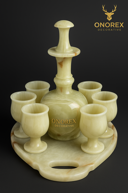 ست 6 تایی جام و شربت خوری و سینی سنگی مرمر