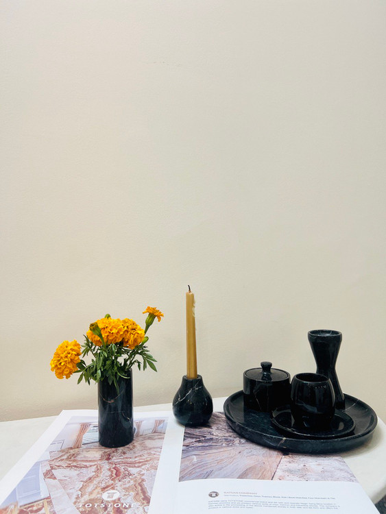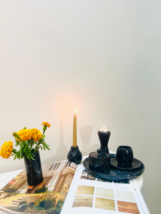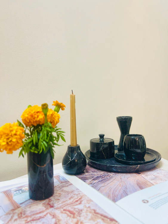 ست تزعینی سنگی منزل شامل دو شمعدان سنگی- سینی سنگی - قندان سنگی -فنجان و نلعبکی سنگی -گلدان سنگی