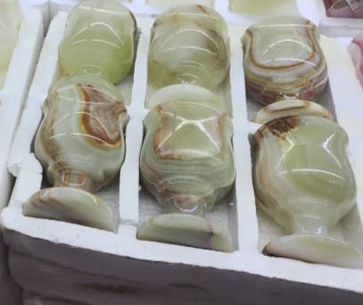 ست شش تایی جام / شات تولید شده از سنگ طبیعی مرمر سبز