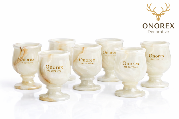 ست شش تایی جام / شات تولید شده از سنگ طبیعی مرمر سفید