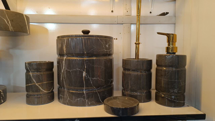 با این ست سرویس بهداشتی لوکس، جلوهای خاص به فضای حمام و دستشویی خود ببخشید. این مجموعه شامل جا مایعی، جا صابونی و جا مسواکی است که همگی با دقت و مهارت بالا از سنگ طبیعی تراش خوردهاند.