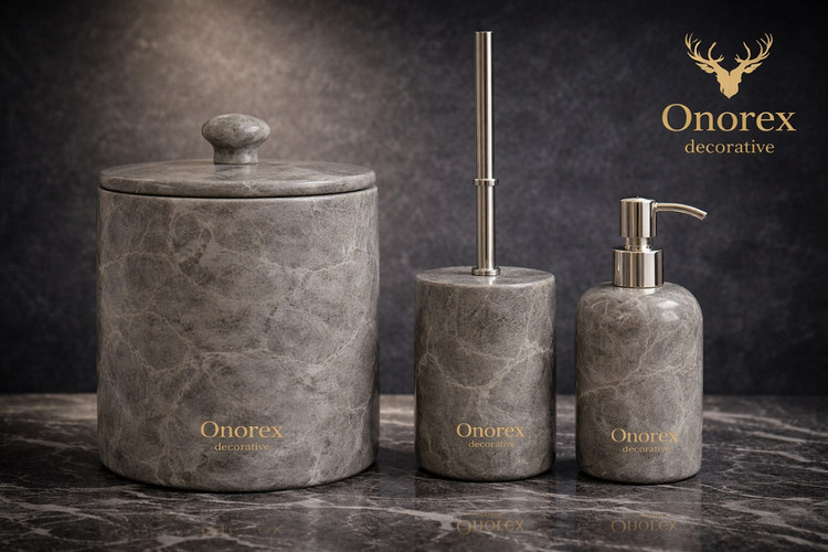 با این ست سرویس بهداشتی لوکس، جلوهای خاص به فضای حمام و دستشویی خود ببخشید. این مجموعه شامل جا مایعی، جا صابونی و جا مسواکی است که همگی با دقت و مهارت بالا از سنگ طبیعی تراش خوردهاند.