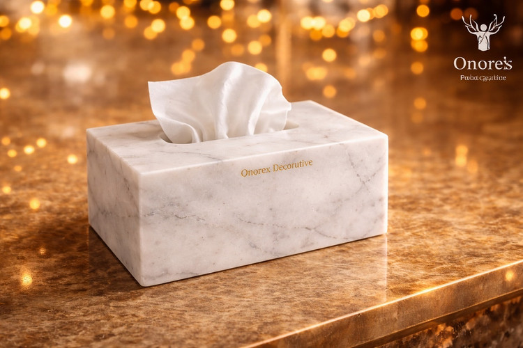 جا دستمال کاغذی سنگی مرمریت سفید.