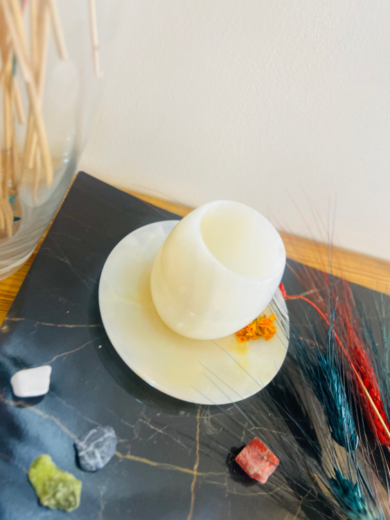 این ست شامل یک عدد فنجان سنگی و نعلبکی بهمراه قندان میباشد .